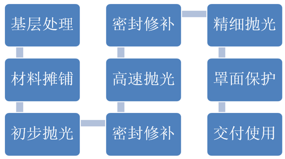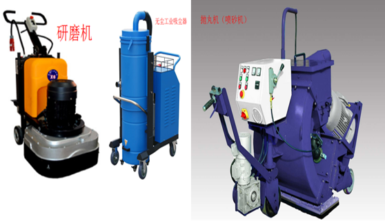 1、用 研磨机、抛丸机对基层进行处理,将基层表面的浮浆层祛除, 边角采用小型无尘打磨机;
