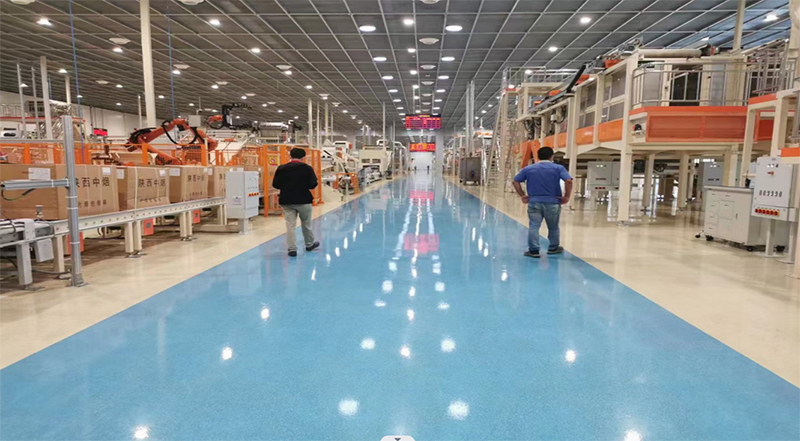 环氧磨石地坪几乎是烟草车间地面的标配,其美观、耐磨、易清洁。 其综合性能优异,特别适用于AGV机器人使用频繁的车间地面!